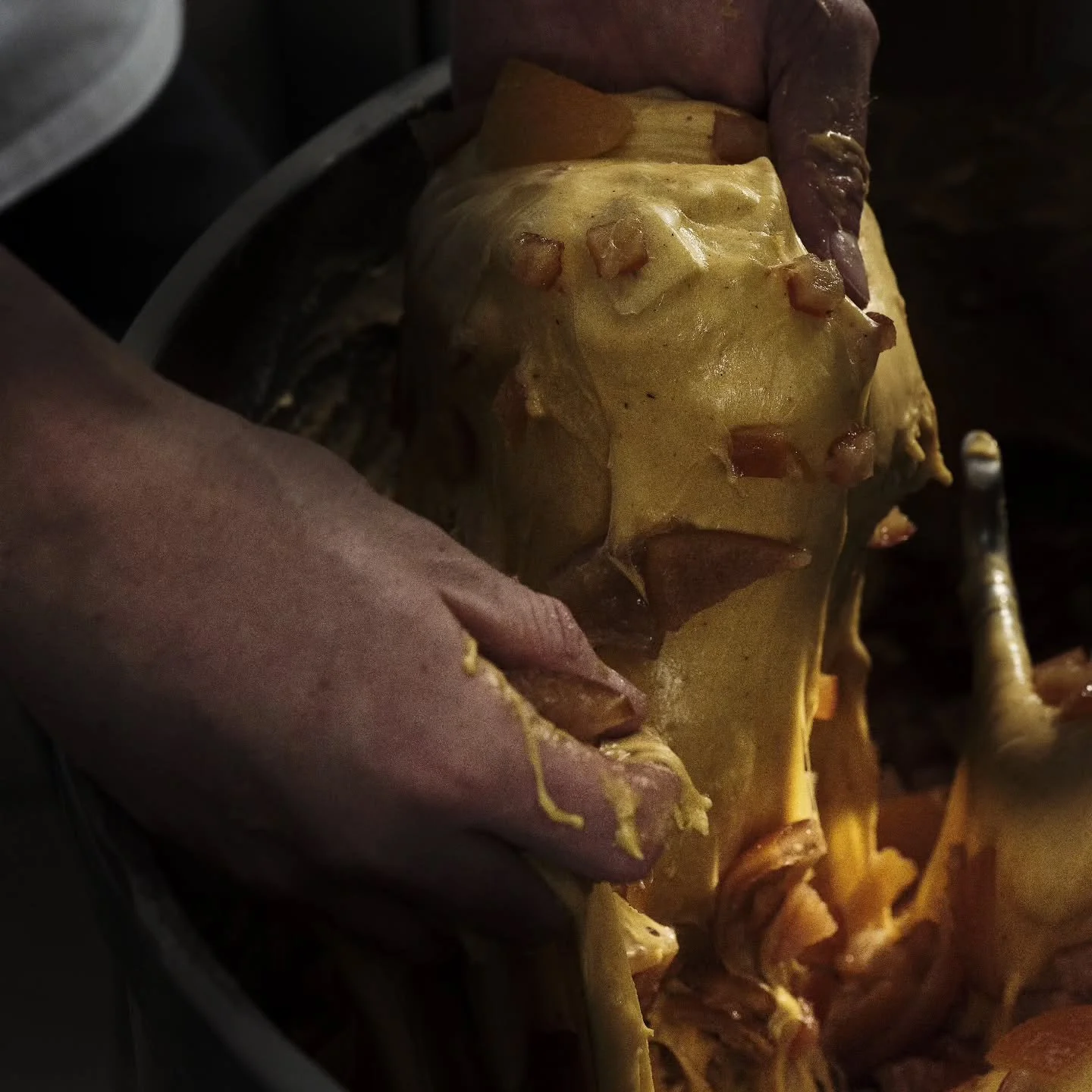 L’impasto matura lentamente, con controllo di acqua e temperature. Il profilo aromatico è netto, la texture umida e soffice, come un cashmere per il palato. Canditi di arancia e cedro di Corrado Assenza, uva Corinto, vaniglia Bourbon. Nessuna dolcezza spinta, solo pulizia e profondità.